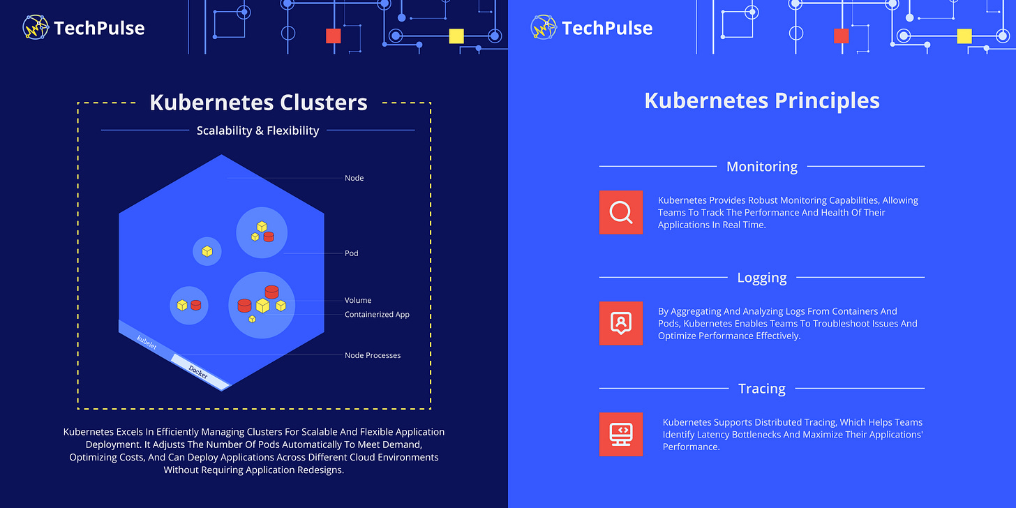 Logging: By aggregating and analyzing logs from containers and pods, Kubernetes enables teams to troubleshoot issues and optimize performance effectively.