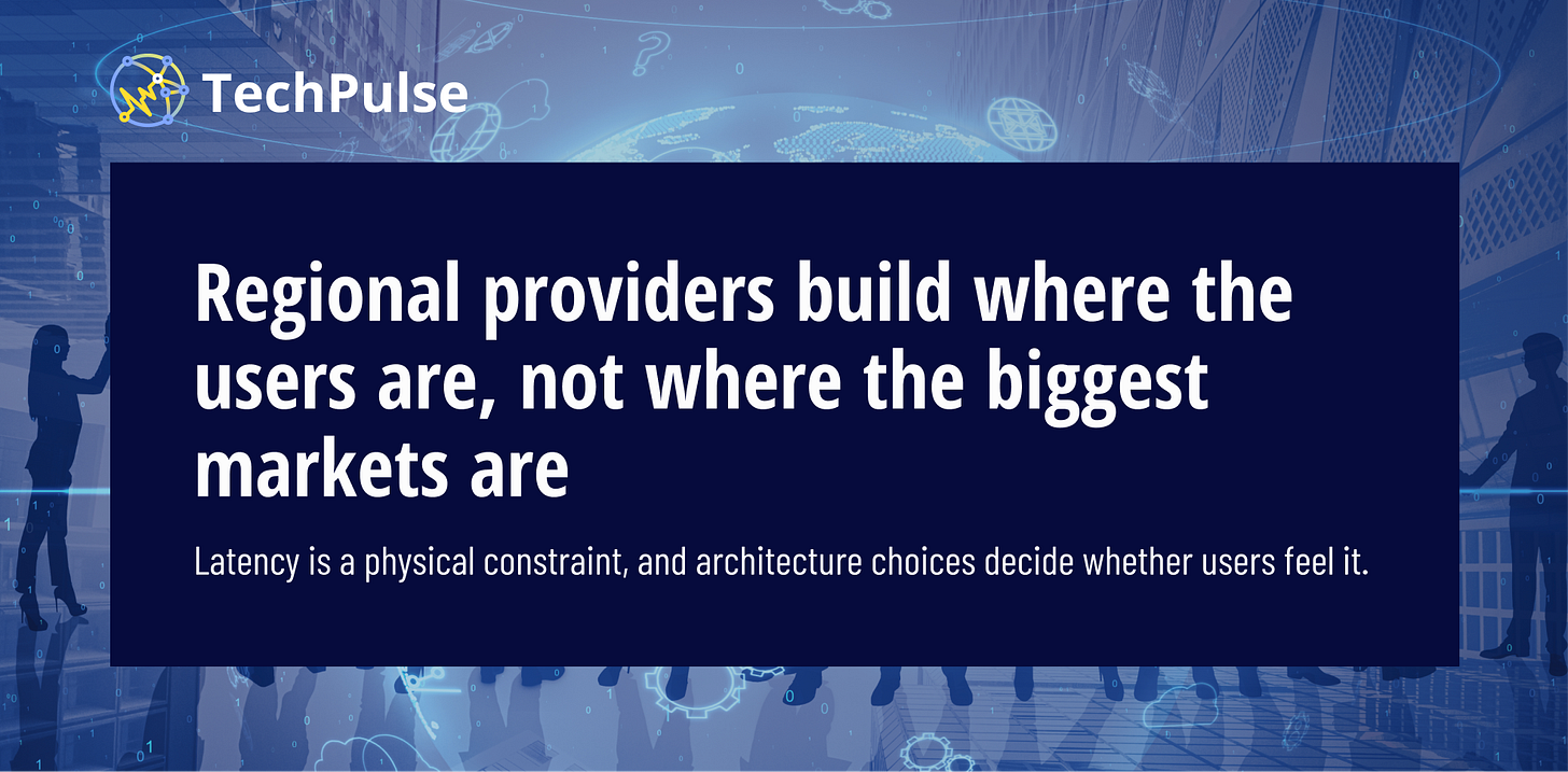 Regional providers start from a different premise. They build where the users are, not where the biggest markets are. They optimize for local performance, not global scale.